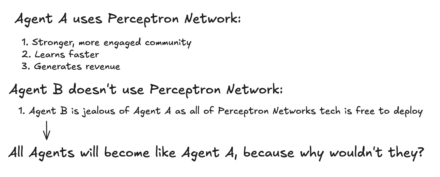At **Perceptron Network**, we believe that agents and their communities need to get along. This means aligning incentives and generating revenue, while encouraging interaction, trust and decentralization.&#x20;